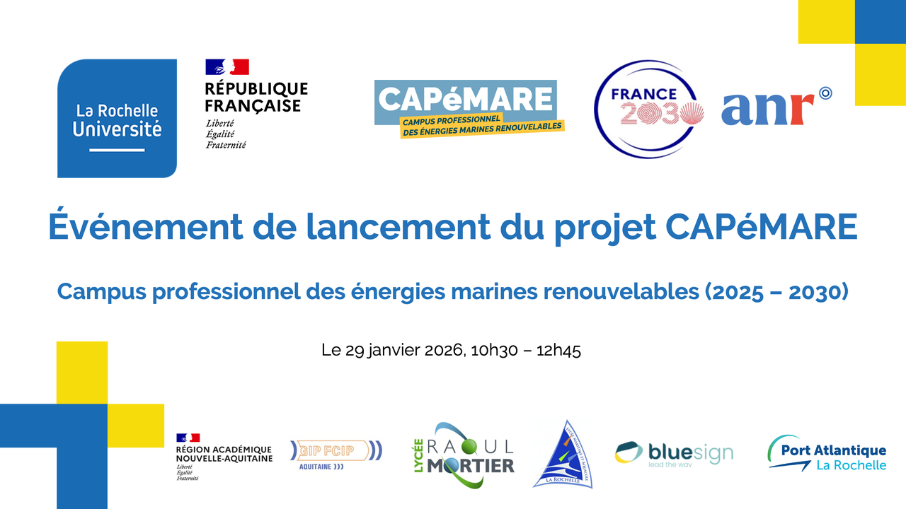 L’événement de lancement s’est déroulé en présence de : Brice Blondel, préfet de Charente-Maritime ; Jean-Marc Huart, Recteur de la Région Académique de Nouvelle-Aquitaine Emmanuel Roux, Recteur délégué à l’enseignement supérieur, la recherche et l…